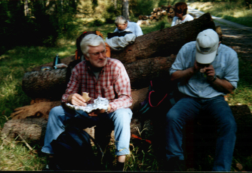 Unsere Mittagspause haben wir, auf Holzstämmen sitzend, an der Bismarck-Eiche bei der großen, sternförmigen Wegkreuzung verbracht. |