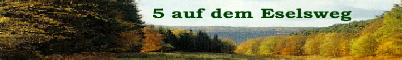 Die fünf Esel trafen sich am 03.10.2004 um ca. 17.00 Uhr im Gasthaus »Zur Schönen Aussicht« in Heigenbrücken. Nachdem jeder sein Zimmer eingenommen hatte, war erst einmal ein Gang durch die Gemeinde angesagt, um notwendige Einkaufsmöglichkeiten zu entdecken. Anschließend traf man sich zum gemeinsamen Abendessen mit gemütlichem Beisammensein und Warmwerden! |